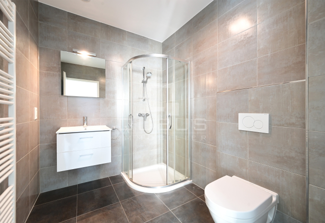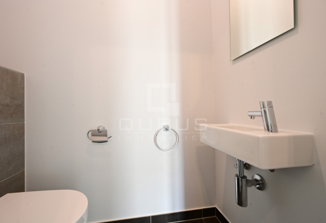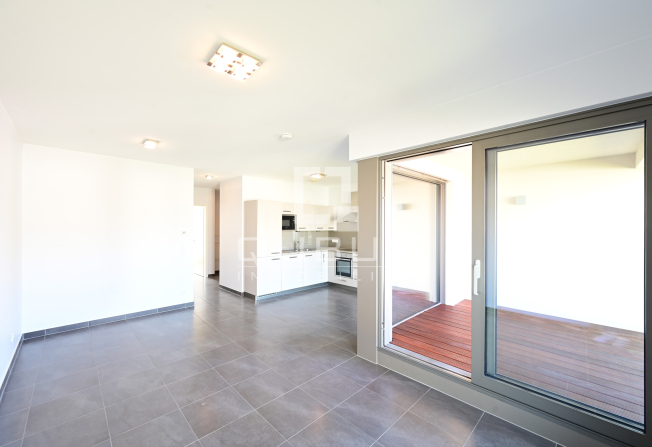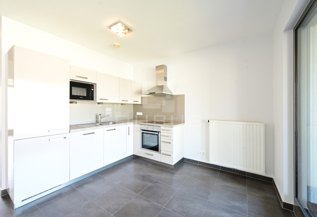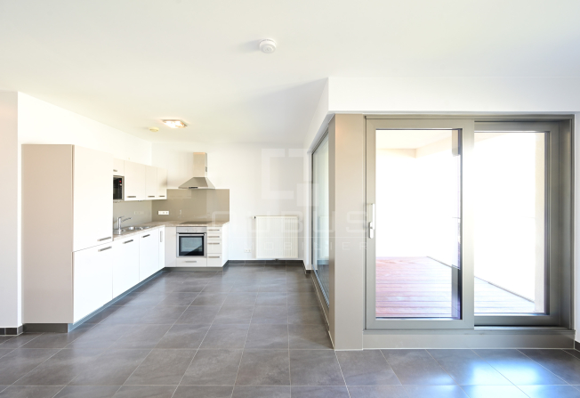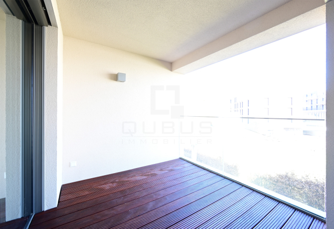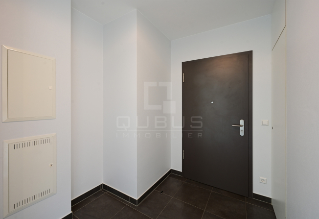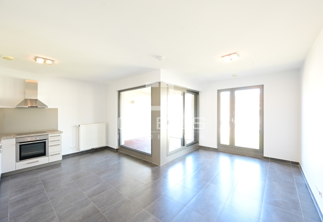 d’un hall d’entrée, WC séparé, cuisine équipée ouverte, living/salle à manger, loggia de 6m2, 1 chambre à coucher avec salle de de douches privative, buanderie commune et deux emplacements intérieurs.