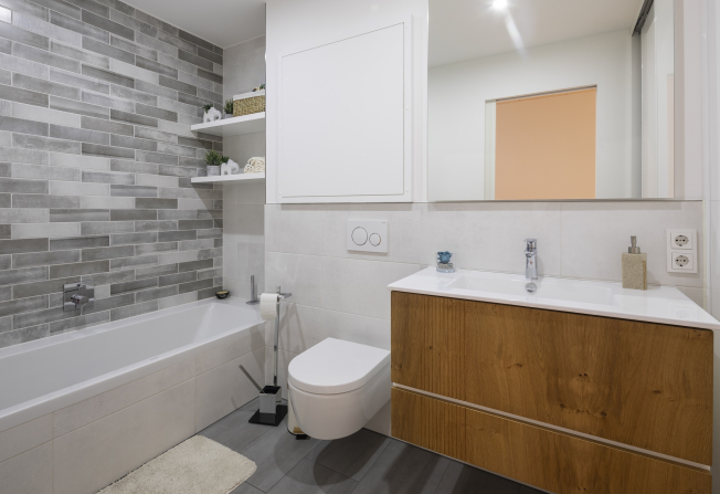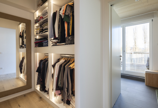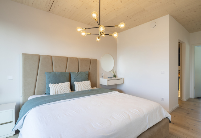 Deux chambres à coucher, chacune disposant de son espace dressing, salle de bains avec baignoire et espace buanderie.