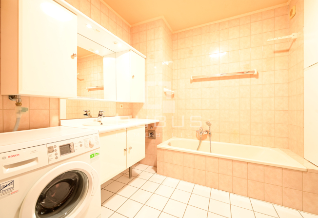 nn hall d’entrée avec espace vestiaire, un WC séparé, une cuisine équipée individuelle, un salon/salle à manger offrant un accès à un premier balcon, un hall de nuit avec un renfoncement pouvant accueillir une grande armoire, deux chambres à coucher, dont une particulièrement spacieuse permettant l’aménagement d’un espace dressing, les deux chambres donnant accès à un second balcon, ainsi qu’une grande salle de bains avec baignoire, douche et branchement pour lave-linge.